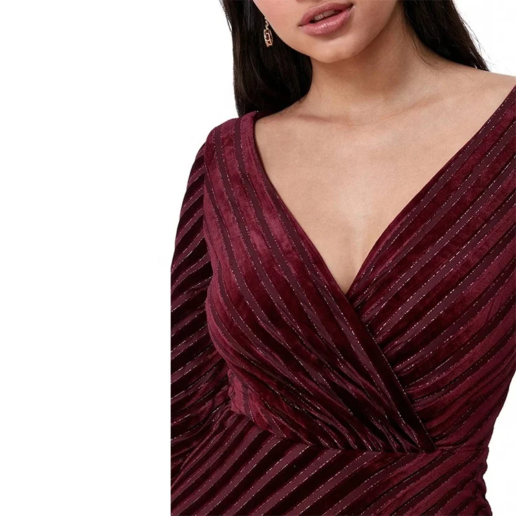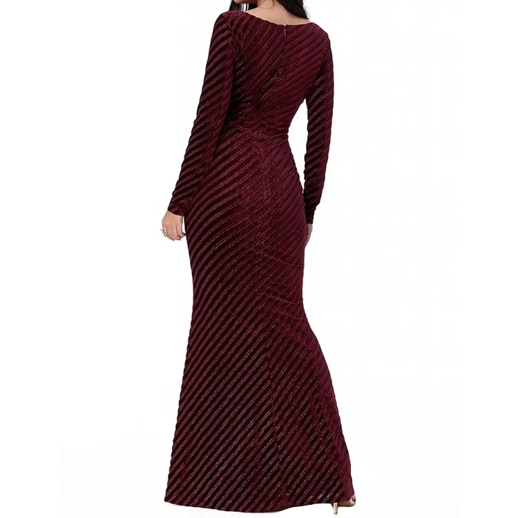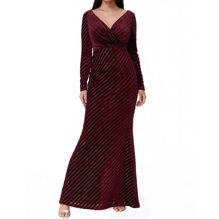 Boutique Manufacturer Custom Clothing Long Sleeve V-neck Fitted Velvet Women Maxi Mermaid Elegant Evening Dress 2025
